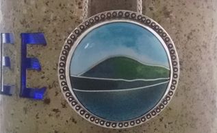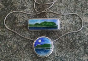 Fine silver and vitreous enamel in a sterling silver setting. 18" sterling chain.