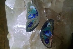 Fine silver and vitreous enamel in a sterling silver setting. Sterling ear wires.