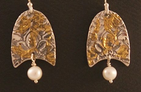 24 KT gold on fine silver. Sterling silver ear wires. Fresh water pearls.
