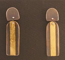 Fine silver and 24 KT gold on fine silver with variegated patina. Sterling silver ear wires.