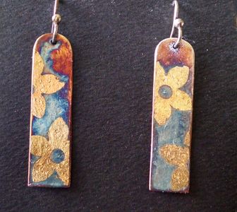 24 KT gold on fine silver with variegated patina. Sterling silver ear wires.