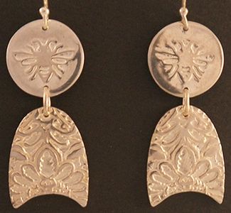 Sterling silver bees with enamel disks in Goldenrod. Sterling ear wires.