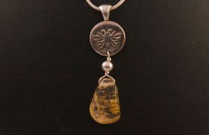 Sterling silver with natural amber colored stone. 24" sterling chain.