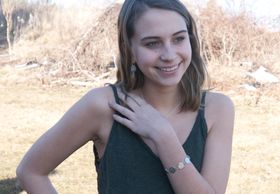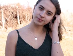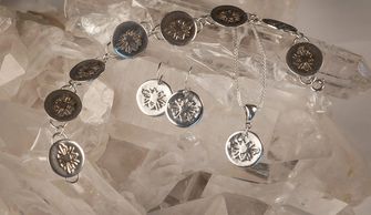 Solid sterling silver necklace, bracelet and earrings, with sterling settings and chain.