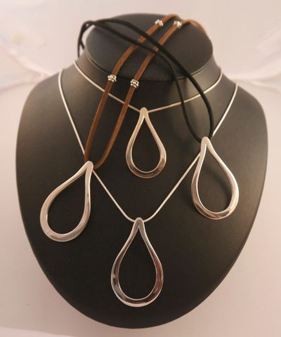 Sterling pendant with 24" faux suede brown cord, silver tone beads.